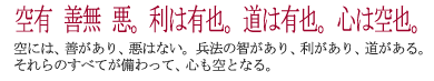 世の中において、あしく見れば、物をわきまへざる所を空と見る所、実の空にはあらず。皆まよふ心なり。此兵法の道においても、武士として道をおこなふに、士の法をしらざる所、空にはあらずして、色々まよひありて、せんかたなき所を空と云なれども、是実の空にはあらざる也。
