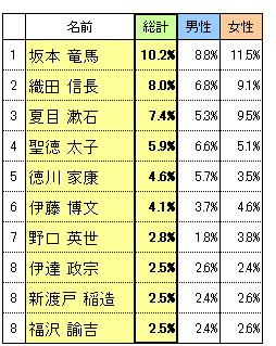 ちなみに今回ランクインした10名のうち、夏目漱石を含む6名の人物が、これまで日本紙幣の肖像として使われています。普段目に触れることの多い紙幣に登場しているということで、顔を思い浮かべやすい人物であると言えますね。