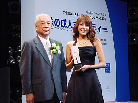 1月5日、東京・六本木ヴェルファーレで行われた真珠の成人式パーティに「二十歳のベスト・パール・ドレッサー2006」に"透明感あふれる女性らしさが、真珠本来の美しさを引き立てる"として選ばれたタレントの酒井彩名さんが出席、100万円相当のパールのネックレスが授与されました。酒井さんは「お酒は事務所の先輩であるアッコさんに鍛えてもらう」と頼もしい宣言をしています。なお今回から新設された首都圏を中心とした10大学のミス・パールと一般の新成人合わせて20名の「ミス・パール」にも20万円相当のパールのネックレスが贈られました。http://www.seaworld.co.jp/