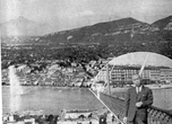 《昭和三十八年㉔》 私が生存して以来、最大に努力した日であった。前日の疲労も一夜の熟睡によって翌朝七時半には起床することが出来た。手早に身支度をして八時にはホテルを出発した。そして時計の街ロックルとラーショード・ホン地方を順次訪問するプランが出来ていたのである。従って、あと一日位はこの地域に滞在を続けたい気持であった。 ー行の半数は、既にジュネーブに先行しているのを思うと団長という立場上では、万止りを得ないことになって終っこのである。従ってこの日のプランは、何もかも超スピーディにやり遂げなければならないことになっていたのである。 大型セダンの自動車に乗り平均時速百キロ以上で突走った。最初は、ラーショード・ホンの近くにあるロンジン時計会社を訪問した。ロンジン社の役員は、目下工場を直しており、それにオメガ工場を見た後では見学の要もあるまい、とハッキリ意表されたので階上のルームで挨拶したあと記念撮影をしただけで辞去した。 少しおかしな話だとは思っていたが、先を急ぐ必要のあった時だけに、先方の意のまま 引あげたのだ。スイスの時計会社は、オメガ以外は、こんな気持でいるのだろうと心の中で描いてみる気になった次第である。 その後、またも車はフルスピードですっ飛したのである。スイスは、時計と共に酪農の国でもあるので、道幅いっぱいに牛の群が列をなしてやってくるのには驚きの眼をもって見守ったのである。頸の下に大きな鈴をぶら下げているのだから、その鈴がじゃらじゃらんと鳴らしながら歩いて行くその光景は、正に農村らしいのどかな風景でもある。だから午が通っている間は、自動車は片すみに寄り添いながら静かにその通過を待って いるという光景である。それらは酪農スイスのエピソード。 やがて自動車は、時計の街ロックルにやって来た。道路が少し高台になっているので、その上から見下ろしたロックルの街は、時計会社が軒並みに詰め切っているという感じである。 ここにはモバードはじめ、ナルダン、ドクサ、チソット、シーマ、ゼニット、モンディアなど、その他沢山の時計会社があり、インカブロックなどは街の中央にデンと大きなPR標が突き出してある。 時計材料店で古いのれんの国際商店があり、ここが松田商会の出張所になっているという話をハンドルマンのマックス氏から聞かされたのだが、この話は私自身も昔から聞いていたのでうなずくことが出来た。それから街中を一回りしてからモバード時計会社を訪問することにした。写真は、モバード時計を訪れた記事が新聞に掲載された。 |