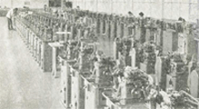 昭和5年=腕時計450、懐中時計150、目覚時計867、置き時計289、掛時計482、電気時計12、合計2,250個。 昭和6年=腕時計512、懐中時計124、目覚時計745、置時計248、掛時計362、電気時計12、合計2,003個。 昭和7年=腕時計623、懐中時計171、目覚時計787、置時計263、掛時計437、電気時計6、合計2,287個。 昭和8年=腕時計593、懐中時計197、目覚時計952、置時計318、掛時計315、電気時計8、合計2,383個。 昭和9年=腕時計783、懐中時計231、目覚時計1,298、置時計431、掛時計877、電気時計51、合計3,671個。 昭和10年=腕時計947、懐中時計283、目覚時計1,448、置時計482、掛時計943、電気時計80、合計4,183個。 昭和11年=腕時計1,242、懐中時計316、目覚時計1,615、置時計541、掛時計1,057、電気時計93、合計4,864個。 昭和12年=腕時計1,182、懐中時計348、目覚時計1,684、置時計566、掛時計892、電気時計441、合計5,113個。 昭和13年=腕時計1,172、懐中時計391、目覚時計1,094、置時計371、掛時計616、電気時計170、合計3,814個。 昭和14年=腕時計1,226、懐中時計409、目覚時計698、置時計232、掛時計609、電気時計210、合計3,384個。 昭和15年=腕時計1,311、懐中時計436、目覚時計712、置時計238、掛時計627、電気時計100、合計3,424個。 昭和16年=腕時計1,274、懐中時計425、目覚時計450、置時計150、掛時計563、電気時計73、合計2,935個。 昭和17年=腕時計371、懐中時計279、目覚時計-----、置時計------、掛時計390、電気時計41、合計1,081個。 昭和18年=腕時計433、懐中時計148、目覚時計-----、置時計-----掛時計165、電気時計--- 、合計808個。 昭和19年=腕時計186、懐中時計62、目覚時計-----、置時計-----掛時計227、電気時計--- 、合計413個。 昭和20年=腕時計26、懐中時計25、目覚時計-----、置時計-----掛時計51、電気時計12 、合計97個。 昭和21年=腕時計115、懐中時計25、目覚時計211、置時計213,-掛時計114、電気時計36 、合計714個。 昭和22年=腕時計280、懐中時計52、目覚時計666、置時計280,-掛時計300、電気時計20 、合計1,598個。 昭和23年=腕時計489、懐中時計103、目覚時計988、置時計262,-掛時計558、電気時計5、合計2,405個。 昭和24年=腕時計713、懐中時計44、目覚時計1,269、置時計322,掛時計697、電気時計10 、合計3,055個。 昭和25年=腕時計686、懐中時計8、目覚時計999、置時計171,-掛時計457、電気時計8 、合計2,329個。 昭和26年=腕時計917、懐中時計8、目覚時計1,210、置時計233,-掛時計663、電気時計29 、合計3,716個。 昭和27年=腕時計1,195、懐中時計22、目覚時計1,297、置時計344,掛時計851、電気時計82、タイマースイッチ5,合計3,716個。 昭和28年=腕時計1,585、懐中時計32、目覚時計1,470、置時計517,掛時計923、電気時計10、タイマースイッチ3,合計4.540個。 昭和29年=腕時計1,966、懐中時計36、目覚時計1,839、置時計443,掛時計986、電気時計13、タイマースイッチ5,合計5,288個。 昭和30年=腕時計2,200、懐中時計39、目覚時計1,903、置時計504,掛時計1,006、電気時計42、タイマースイッチ5,合計5,699個。 昭和31年=腕時計2,644、懐中時計42、目覚時計2,365、置時計512,掛時計1,102、電気時計146、タイマースイッチ5,合計6,816個。 昭和32年=腕時計3,372、懐中時計47、目覚時計2,799、置時計573,掛時計1,143、電気時計306、タイマースイッチ6,合計8,246個。 昭和33年=腕時計4,263、懐中時計47、目覚時計2,347、置時計509,掛時計975、電気時計329、タイマースイッチ24,合計8,246個。 昭和34年=腕時計5,401、懐中時計46、目覚時計2,624、置時計604,掛時計944、電気時計569、タイマースイッチ458,合計10,646個。 昭和35年=腕時計7,093、懐中時計54、目覚時計4,021、置時計703,掛時計1,019、電気時計757、タイマースイッチ566,合計14,213個。 昭和36年=腕時計9,158、懐中時計73、目覚時計4,943、置時計641,掛時計1,088、電気時計949、タイマースイッチ791,合計17,643個。 昭和37年=腕時計10,695、懐中時計84、目覚時計5,954、置時計562,掛時計1,364、電気時計1,139、タイマースイッチ793,合計20,591個。 昭和38年=腕時計11,597、懐中時計103、目覚時計6,371、置時計578,掛時計1,184、電気時計1,180、タイマースイッチ5907,合計21,920個。 昭和39年=腕時計13,214、懐中時計--- 、目覚時計7,381、置時計603,掛時計1,124、電気時計1,707、タイマースイッチ836,合計24,865個。 昭和40年=腕時計13,610、懐中時計--- 、目覚時計-----、置時計-----,掛時計-----、電気時計----、タイマースイッチ----,合計26,400個。 写真は、和服で日本髪の女工さんの姿も見られる工場内。" |