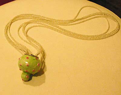 | ドイツのマイセンは世界的に有名な陶器の産地です。そのマイセンでも宝石デザイナーが活躍中です。写真は宝石デザイナーが自分で創ったオリジナルのマイセン陶器を素材に使ったジュエリーです。いま、このように、素材の宝石や貴金属の希少価値を超えた新しい「アート」の価値を創造する宝石文化革命が起こっています。 |