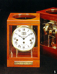 電波時計をはじめ置き時計の精度は非常に正確になったが、リストウオッチ同様に置き時計にも機械式時計の持つ味わいを好む人が多くいる。信頼性やメンテナンスを考慮してドイツ・ヘルムレ社のムーブメントを高級光沢塗装を施した木製ケースに収めている。さらに全面を高級ガラス材にして、メカニカルな機械の美しさを堪能しながら、どんな場所においても違和感のないデザインに仕上げている。一週間に一度ぜんまいを巻くだけで、緩やかな時の流れを感じられる。39万9000円。
