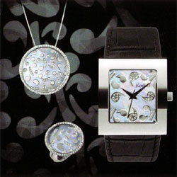 フランスのジュエリーブランド、コルロフより“Lady Korloff Collection”(レディ コルロフコレクション)が新登場しました。レディコルロフ・コレクションは、現代の女性たちにぴったりなコンテンポラリーなデザインが特徴です。K18ホワイトゴールドをベースに、マザーオブパール、ブランドロゴのダブルKをダイヤであしらい、雪の結晶のように見立てた贅沢なコレクションです。同デサインで時計、ネックレス、リングがあります。