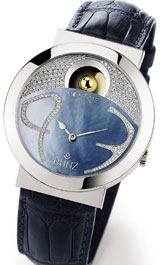 文字盤にルータニウムを使用しモダンなデザインが落ちついたイメージを醸し出す |