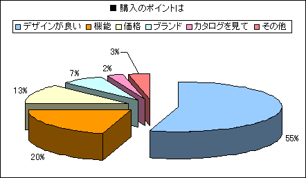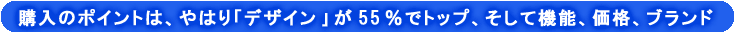 「ブランド」で買う人が7%に過ぎません。それに引き換え「デザイン」は55%の人が挙げています。