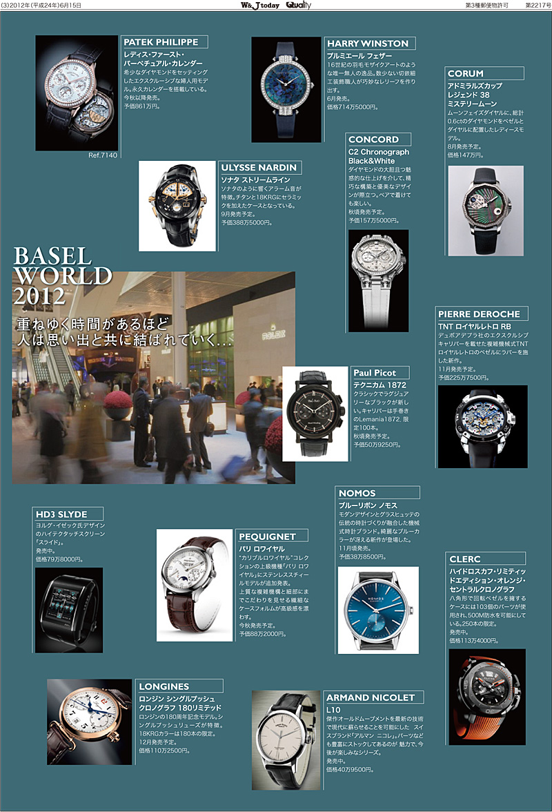 時計美術宝飾新聞社 LINK ジュエリー情報 WATCH情報 BASEL/SIHH情報 お問合せ ご購読のご案内 ごあいさつ