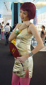 ブランドネームギャラリーでは、ミニウオッチパレードを毎日何回も行い、モデル嬢が出展社のウオッチを腕にアピールしていました。